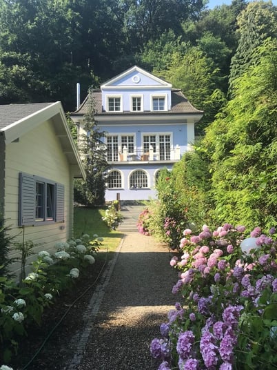 Die blaue Villa ist ein Ort der Ruhe. Durch ihre einmalige Lage im vornehmen, gleichermaßen zentralen wie schwarzwaldnahen Stadtteil Herdern ist das Gästehaus ein einmaliges Refugium für Urlauber.